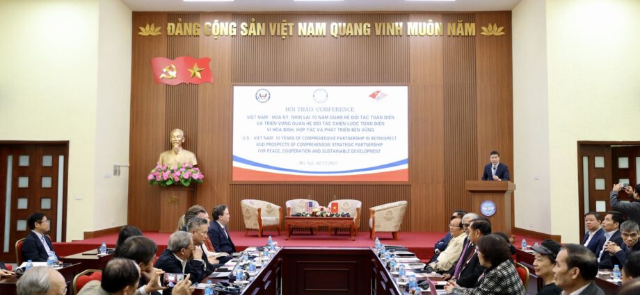 Sáng 2/12, tại Hà Nội, Liên hiệp các Tổ chức Hữu nghị Việt Nam phối hợp với Đại sứ quán Hoa Kỳ tại Việt Nam tổ chức Hội thảo “Nhìn lại 10 năm quan hệ Đối tác Toàn diện và triển khai quan hệ Đối tác Chiến lược Toàn diện Việt Nam-Hoa Kỳ vì Hòa bình, Hợp tác và Phát triển Bền vững.”