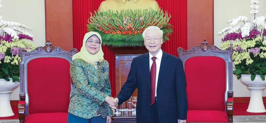 Tổng Bí thư Nguyễn Phú Trọng tiếp Tổng thống Singapore Halimah Yacob, ngày 17/10/2022.