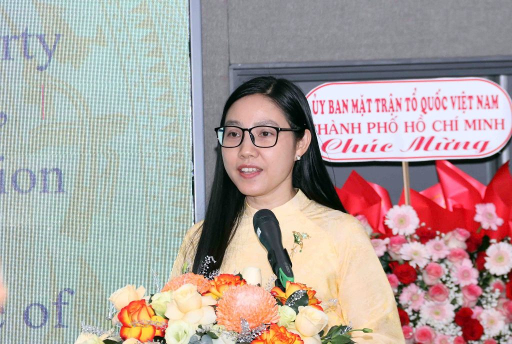 Bà Hà Thanh, Chủ tịch Liên hiệp các tổ chức hữu nghị Thành phố Hồ Chí Minh phát biểu tại chương trình