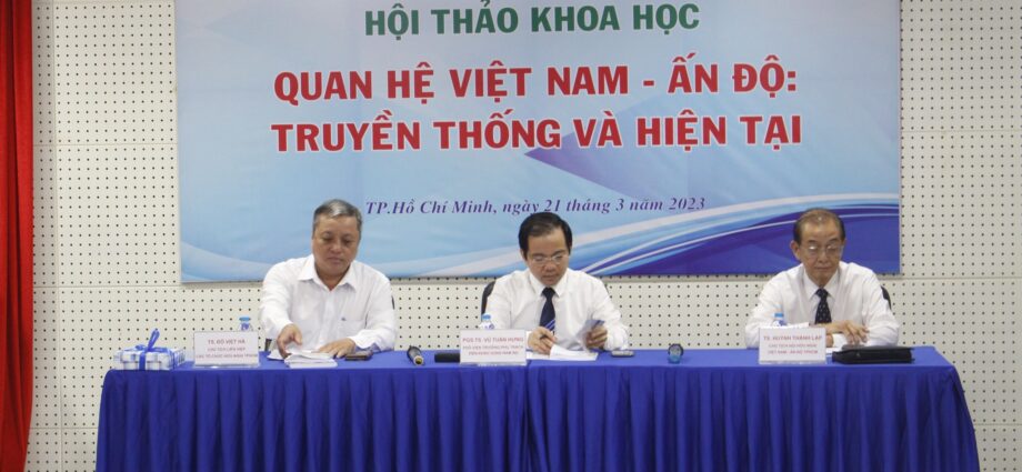 Sáng ngày 21 tháng 02 năm 2023, tại Viện Khoa học xã hội vùng Nam Bộ đã diễn ra buổi hội thảo khoa học với chủ đề “QUAN HỆ VIỆT NAM – ẤN ĐỘ: TRUYỀN THỐNG VÀ HIỆN TẠI” do Liên hiệp các tổ chức hữu nghị Thành phố Hồ Chí Minh, Hội hữu nghị Việt Nam – Ấn Độ Thành phố Hồ Chí Minh phối hợp với Viện khoa học xã hội vùng Nam Bộ thuộc Viện Hàn lâm Khoa học xã hội Việt Nam tổ chức.
