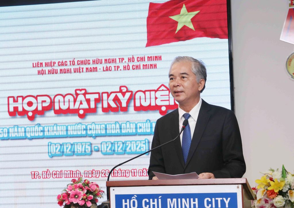 Ngày 26/11, Liên hiệp các tổ chức hữu nghị và Hội Hữu nghị Việt – Lào Thành phố Hồ Chí Minh tổ chức họp mặt kỷ niệm 50 năm Quốc khánh nước Cộng hòa Dân chủ Nhân dân Lào (02/12/1975 – 02/12/2025).