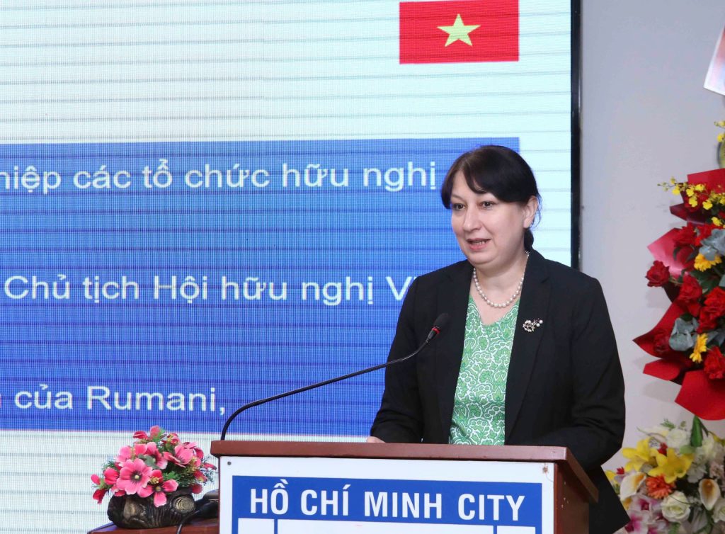 “Đối thoại nghị viện giữa hai nước đã phát triển và đa dạng hóa, đóng vai trò quan trọng thúc đẩy hợp tác song phương. Chúng tôi cùng với những người bạn Việt Nam tổ chức một loạt sự kiện kỷ niệm, được công chúng đánh giá cao. Hôm nay, Liên hiệp các tổ chức hữu nghị Thành phố Hồ Chí Minh (HUFO) và Hội Hữu nghị Việt Nam – Romania thành phố một lần nữa chứng tỏ là những đơn vị tiên phong trong việc thúc đẩy quan hệ song phương và ngoại giao nhân dân giữa hai nước”, bà Đại sứ cho biết.