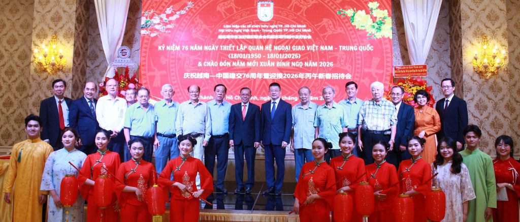 Tối ngày 29/01/2026, Liên hiệp các tổ chức hữu nghị Thành phố Hồ Chí Minh phối hợp với Hội Hữu nghị Việt Nam – Trung Quốc Thành phố Hồ Chí Minh tổ chức họp mặt kỷ niệm 76 năm thiết lập quan hệ ngoại giao Việt Nam – Trung Quốc (18/01/1950 – 18/01/2026). Chương trình là dịp ôn lại truyền thống hữu nghị lâu đời giữa hai nước, đồng thời khẳng định vai trò tích cực của Thành phố Hồ Chí Minh trong việc thúc đẩy quan hệ đối ngoại nhân dân Việt Nam – Trung Quốc trong giai đoạn mới.