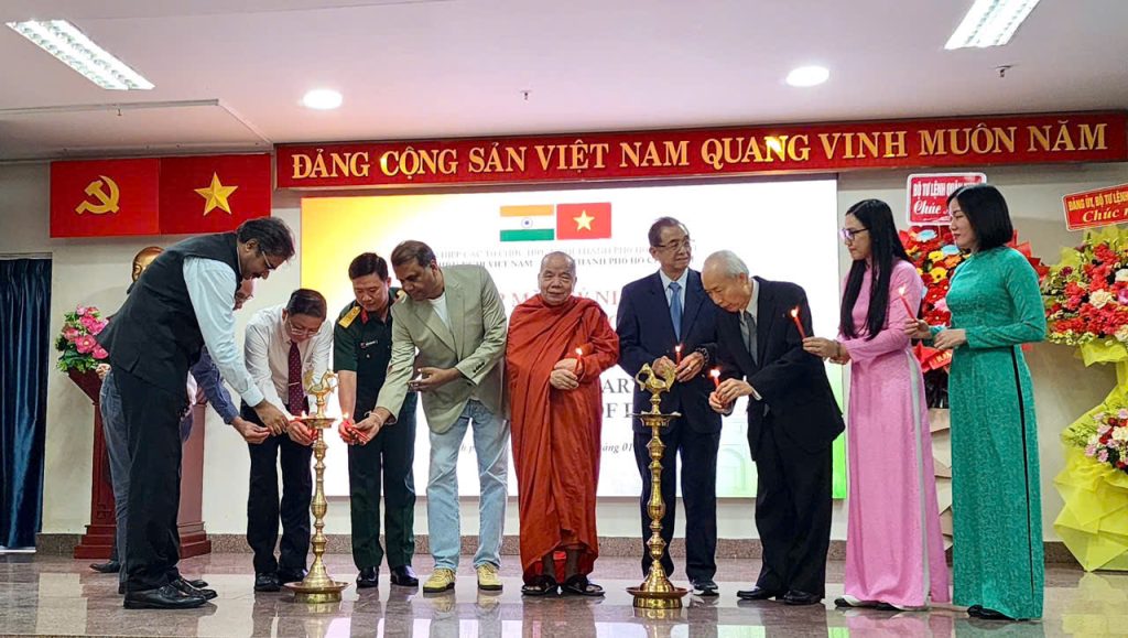 Các đại biểu tham gia nghi thức thắp đèn truyền thống của Ấn Độ, cầu mong những điều bình an, thuận lợi