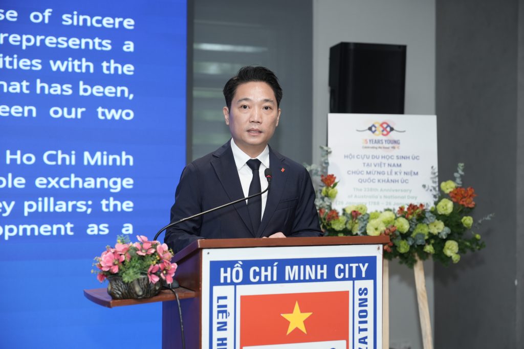 Ông Lê Trương Hiền Hòa, Phó Giám đốc Sở Du lịch Thành phố Hồ Chí Minh, Phó Chủ tịch Hội Hữu nghị Việt Nam – Úc Thành phố Hồ Chí Minh phát biểu tại buổi họp mặt