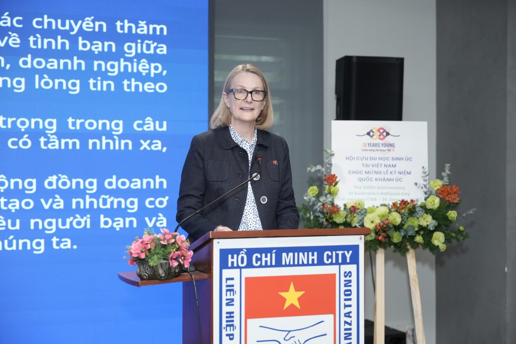 Phát biểu tại buổi họp mặt, bà Sarah Hooper, Tổng Lãnh sự Úc tại Thành phố Hồ Chí Minh khẳng định tình hữu nghị giữa Úc và Việt Nam chưa bao giờ bền chặt hơn thế. Hai nước hiện là đối tác chiến lược toàn diện, hợp tác chặt chẽ trên nhiều lĩnh vực như thương mại, đầu tư, giáo dục, khoa học, ứng phó biến đổi khí hậu, năng lượng và đặc biệt là giao lưu nhân dân.